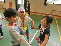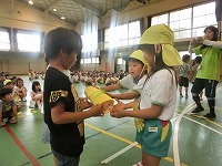 その後は、一年生との交流がありました。一緒に体操を踊ったり、自己紹介をしたりと仲良く過ごすことができました。一年生からはペンダントをいただき、幼稚園からは手紙を渡しました。次回の交流も楽しみにしています。