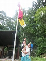 竜王こどもの王国(京田辺市野外活動センター)では、まず最初に自分たちの旗を掲げ、「薪幼稚園の王国になった」と大喜び。