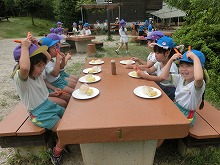 先生や友達と一緒に2日間過ごし、山の探検、アスレチック、キーホルダー作り、キャンプファイヤー、自分たちの出し物の披露、入浴、宿泊など、たくさんのことを体験しました。この様々な経験が子ども達の自信になってくれればと思います。