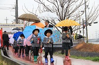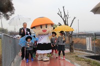 幼稚園の近くに素敵な散策路が完成し、5歳児がセレモニーに参加しました。あいにくの雨でしたが、子ども達は市長、一休さんや地域の方と一緒に楽しく渡り初めをしました。きれいな散策路には地図やベンチも設置されました。今までも、春や秋に散歩に出かけていた道。きれいになった道に散歩に出かけるのを楽しみにしています。