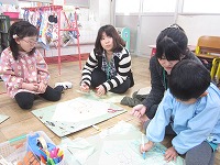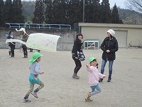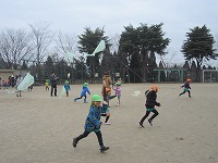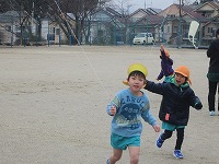 4歳児は、親子で凧ををつくり、できあがった凧を持って小学校へ行きました。「とんだー」「みてー!」と、広い運動場でいっぱい走って遊びました。寒い中、お家の皆様もありがとうございました。
