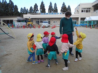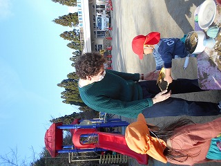 3歳児いちご組の子どもたちは「ジャック先生一緒に遊ぼう。」と取り囲み、手を引いて園庭を案内してくれます。