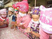 前日に、餅米を洗う手伝いをしてくれた5歳児の子ども達です。