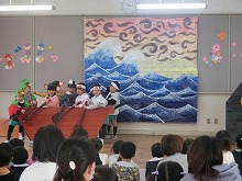 13日(水)は、自分のクラス以外の劇にも参加して、異年齢の交流をし、いろんな役を楽しみました。「おもしろいな」「やってみたいな」という意欲を大切に、いろんな経験を重ねていきたいと思います。
