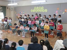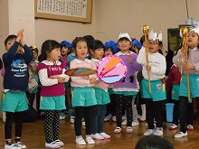 8日(土)は、生活発表会がありました。寒い中、たくさんの皆様に幼稚園に来ていただき、温かい拍手をいただきましてありがとうございました。子ども達は、たくさんのお客様の前で緊張したり、張り切ったりといろんな表情を見せてくれました。普段の練習では、元気いっぱい歌や劇を楽しんでいた子ども達です。自分の役割に自信をもって発表したり、友達と協力したりする楽しさを感じることができたと思います。