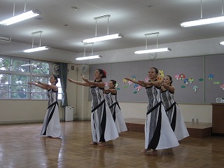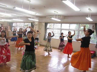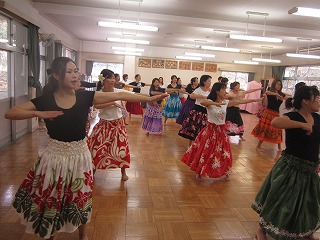 ホールでPTA井戸端会議のフラダンスの講習会がありました。