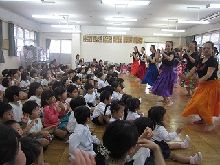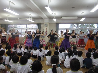 「お母さんかわいい」「素敵やった!」と子ども達から声があがり、アンコールでは、子ども達も一緒に振りを真似しました。