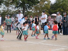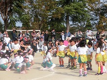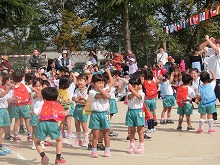 前日には「運動会、ドキドキわくわくするわ」と、言っている子もいて、楽しみ半分緊張半分の様子でしたが、当日は、たくさんの観客の皆様の前で、一人一人が自分の持っている力を発揮し精一杯頑張る姿を見せてくれました。