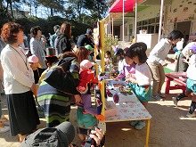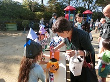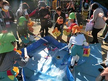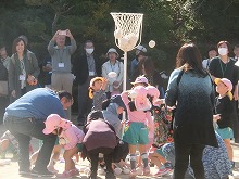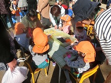 青く澄み渡った空に凛とした空気を感じるこの頃です。今日は、祖父母参観がありました。たくさんの祖父母の方、お家の方にご来園いただき、幼稚園でしているお店屋さんごっこや玉入れなどの運動遊びに参加していただきました。子どもたちは、お店にたくさんのお客様がきて大喜び。「くじ引いてください」「あたり!」「お菓子買いにきてくださいね」と、お店の人になったり、呼び込みをしたりとなりきって遊ぶことが楽しくお店も大繁盛でした。