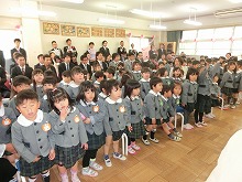 新しいお友達を43名を迎え、総勢135名の子ども達と30年度をスタートしました。式では、新しい名札をつけた子ども達が元気いっぱい返事をすることができました。
