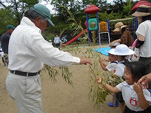 甘南備山保存会の皆さまには、笹飾りの笹でも、毎年お世話になっています。子ども達も、お礼を言い感謝の気持ちを伝えられました。ありがとうございました。