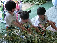 昨日、甘南備山保存会の皆さまが七夕の笹を持ってきてくださいました。家庭に持ち帰る笹もつくってくださり、子どもたちは、「ありがとう」「お家で飾るねん」と嬉しそうでした。