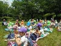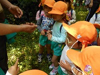 今年も4,5歳児が甘南備山保存会の皆さんと一緒に、甘南備山へ遠足に行きました。前日の雨もすっかりあがり、洗い立てような草木の緑が美しい山の中を元気よく歩きました。