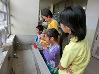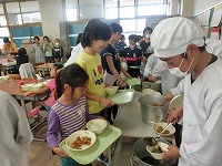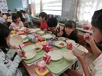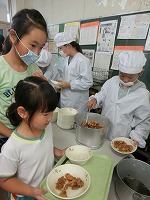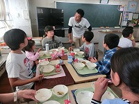 5歳児の子供たちが、幼少連携の一つである給食体験をさせていただきました。初めての体験にドキドキしていた子ども達でしたが、優しい5年生のお兄さんお姉さんに、配膳の仕方や食器の扱い方まで丁寧に教えてもらい、すぐに和やかな雰囲気になりました。楽しいことを言って楽しませてくれるお兄さんお姉さんのおかげで、食がすすんだ子ども達です。給食の後は、ゲームや薪小学校のエアロビクス体操も教えてもらいました。5歳児の子どもたちは「おいしかった」「お兄ちゃんおもしろかった」「歯磨きの仕方を優しく教えてくれはった」など、大満足の様子でした。