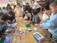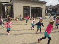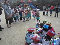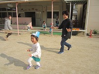園庭では、できあがったお面を被って、みんな元気いっぱい走って鬼ごっこをしました。元気な子ども達に寒さも飛んでいきそうです。お家の方も、一緒に走って鬼ごっこを楽しんでくださいました。ありがとうございました。