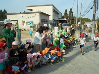 今日は、薪小学校のマラソン大会がありました。今年から幼稚園の前を走るコースに変わり、小学生の応援をしました。手作りのマラカスやメガホンを持って「がんばってー」と、声援を送っていた子どもたちです。幼稚園でも、今日からマラソンごっこを始めました。「お兄ちゃんお姉ちゃんみたいに速く走れるよ」と、子どもたちも張り切っています。