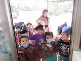 仮装をして幼稚園内の保育室を「おやつをくれないといたずらするぞ。」とめぐっている子どもたち。