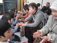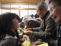 5歳児が一休ヶ丘公民館に行き、地域のおじい様おばあ様と交流をしました。歌を披露したり、一緒にわらべうた遊びをして過ごしました。「おばあちゃんの手あったかい」「優しくお話きいてくれはった」と、嬉しそうな子ども達でした。手作りのおひな様をプレゼントすると、大変喜んでくださり、子どもたちも満足そうでした。