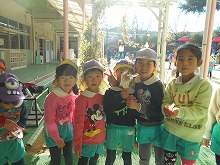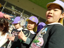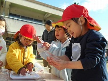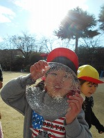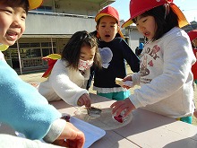 「先生みて」「氷できてた」「きれーい」と、早速氷に触れて遊びを楽しみました。「ツルツルしてるよ」「鏡みたい」「お花も一緒に固まったよ」と、冬の自然のおもしろさや不思議さを味わっています。