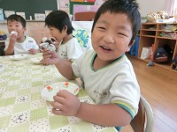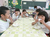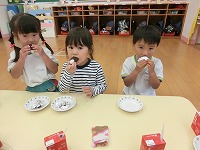 担任から月のお話を聞き、月見団子を食べました。「おいしいな」「このお団子って月のうさぎさんがつくったん?」と、月に思いをはせる子もいました。今日は、晴天でお月様が、きっときれいに見えることでしょう。家族みなさんで月を眺め、いろいろなお話をしながら、秋の夜長を楽しんでほしいと思います。