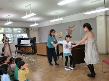 今日は、幼稚園でピアノ・マリンバコンサートがありました。子ども達がよく知っている曲をたくさん聴かせていただき、「この曲知ってるよ」と、口ずさんだり、自分の膝をマリンバのように叩きながらリズムをとったりして楽しみました。「おもちゃのチャチャチャ」の曲では、1人1つずつカスタネットや鈴を持ち、鉄琴の体験をさせていただく子と一緒に合奏をしました。