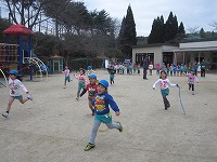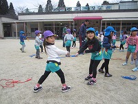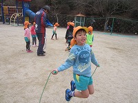 今日も寒い日でしたが、子ども達は元気いっぱい。今日は縄で遊