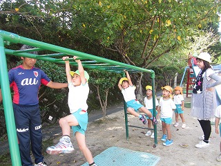 子ども達は「みててな」とうんていや鉄棒などチャレンジしました。