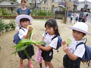 トウモロコシを育てている子ども達は、おいしい甘いトウモロコシを作るために間引きをしました。それが「ヤングコーン」と知ってお家の方も子ども達もびっくり!