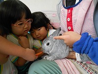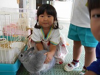 「これ食べてー」「しろちゃんとも仲良くしてね」と、子ども達に大人気です。ウサギのお世話もさらに、張り切っている5歳児。みんなで大切に育てています。
