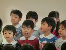 5歳児が修了していく日が近づいてきました。今まで、一緒にふれあい遊びをしたり、折り紙の折り方やうさぎ当番の仕方を教えてくれたり、3歳児の着替えを手伝ってくれたりといろいろ優しくしてくれた大きい組さん。今日は、幼稚園でこどもお別れ会をしました。