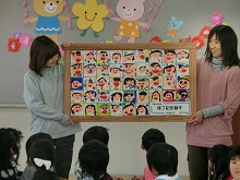 曲に思わず踊る子どももいました。5歳児からは、自分の顔を描いた修了記念品をもらいました。