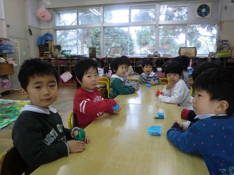 その後、保育室で豆を食べ、一年の健康を願いました。