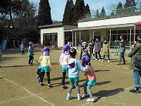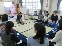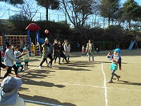 お茶会の後は、お母さんとドッジボール大会を楽しみました。投げる力がついてきた子どもたちと、お母さんの本気の勝負に、元気いっぱい盛り上がって遊ぶことができました。