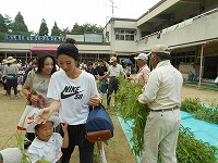 甘南備山保存会の皆さんが、七夕飾りの笹を持ってきてくださいました。家庭でも笹飾りができるように小さめの笹もくださいました。
