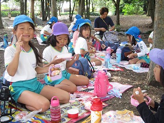 ドングリがいっぱい落ちている芝生広場で秋の自然を感じながらお弁当やおやつを食べ、楽しい一日になりました。