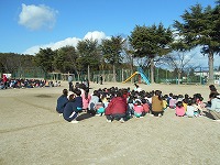 園庭に避難後、薪小学校の校庭に2次避難しました。寒い中でし