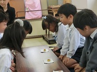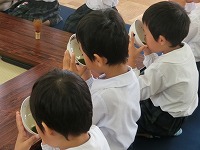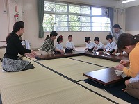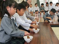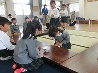 今日は、2回目のお茶会です。今日は、子ども達自身で茶筅でお茶をたてます。お作法を教えていただき、真剣な面持ちで取り組みました。前回に教えていただいた、歩き方やお菓子のいただき方などを思い出しながら取り組みましたが、お茶の先生からは、「姿勢がきれいですね」と褒めていただきました。「楽しかった」「また、したいな」と、日本の伝統文化に触れるいい機会になりました。