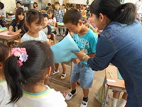 5日には、5歳児が薪小学校に招待状を持っていきました。小学生と一緒にする玉入れの競技を楽しみにしています。