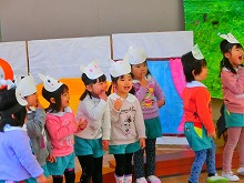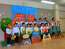 2月3日(土)に、生活発表会がありました。たくさんのお客様の前で、元気いっぱい歌や劇を披露した子ども達。先生や友達と一緒に自分たちでセリフや動きを考えてつくりあげた劇では、自信をもって発表する姿がありました。友達と一緒にしたり力を合わせてすることの楽しさを感じ、一人一人の良さや力を発揮することができ、充実感や満足感を味わうことができました。