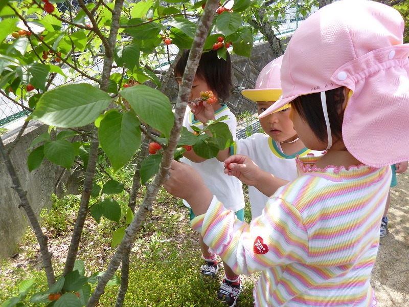 4歳児、5歳児もさくらんぼを収穫し、みんなでおいしく食べました。