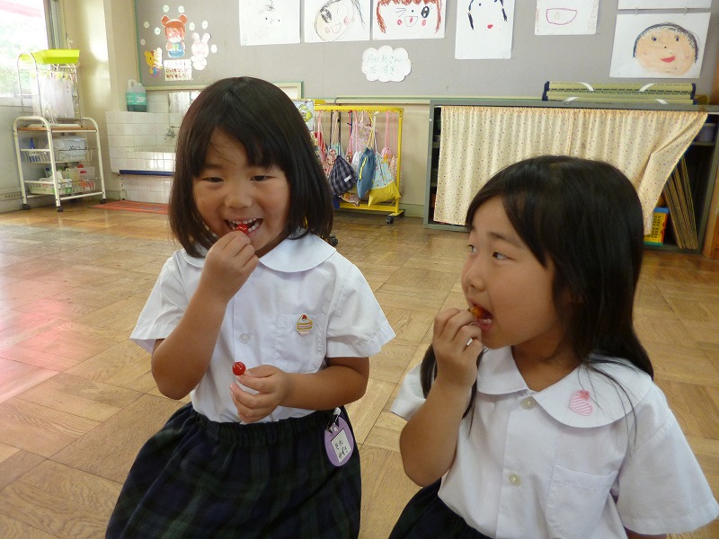 「すっぱいけどおいしい!」とかわいいさくらんぼにうれしそうな子ども達でした。