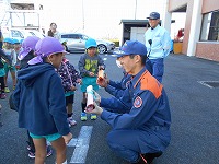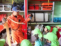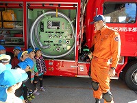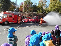 実際に、放水するところも見せていただき、きびきびと仕事をされる署員の方に思わず拍手をしていた子ども達です。最後には、日頃、みんなの為に仕事をしてくださっているお礼の手紙を渡しました。