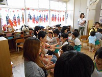 お引っ越しゲームや歌遊びでふれあい遊び。
