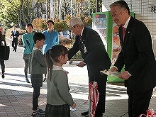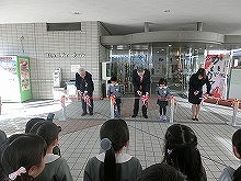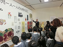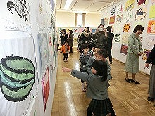 京田辺市長様、教育長様にご来賓としてお越しいただき、保護者の方にご参加いただきました。テープカットのセレモニーを終え、絵画展の見学も市長様、教育長様と一緒にしました。「この絵はぼく描いたよ」「幼稚園で飼ってるうさぎさん描いたよ」と、自分の思いやお話を伝えながら一緒に見学することができました。