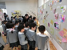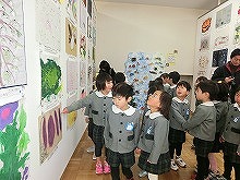 「私の絵はここに飾ってあるよ」「○○ちゃんのはここ!」と、自分や友達の絵を見つけて嬉しそうな子どもたちです。一人一人の思いを表現した感性豊かな作品を見にご家族の皆様も是非お越しください。
