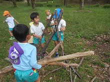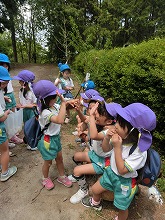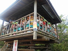 4歳児も、展望台に上って景色をみて建物を探したり、「お母さんまで聞こえるかな?ヤッホー」と、声を出して楽しみました。途中蛇に遭遇して、「本物や」「びっくりした」と、驚いた様子でした。