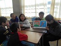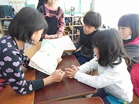5歳児の子どもたちが、薪小学校5年生に絵本の読み聞かせをしてもらいました。5年生が楽しい絵本を選んでくれたので、5歳児は、集中して楽しそうに見ていました。その後、グループでのゲームでは、ふれあいや会話を楽しみながら、盛り上がりました。「楽しかった」「おもしろかったな」と、小学校の雰囲気にすっかり慣れ、ますます身近に感じることができた5歳児です。