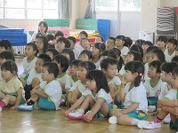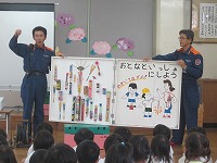 今日は、消防署の方がきてくださり防火教室がありました。DVDで火事の怖さを教えてもらい、また、花火で遊ぶときの約束をしました。