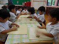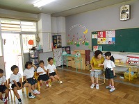 今日から2学期です。登園してきた子ども達は「おはようございます」とニコニコと元気に挨拶!始業式では一人一人の元気な返事を聞くことができました。