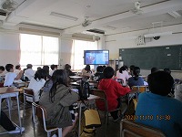 今回は、「なまえのないねこ」という絵本を読み聞かせしていただきました。誰にも名前を付けてもらったことのない猫が、名前を探しにいくという内容の絵本です。読み聞かせ中、各学級では画面に見入ってしっかりと聞いている児童が多かったようです。読み聞かせの最後には、図書室からのお知らせもありました。